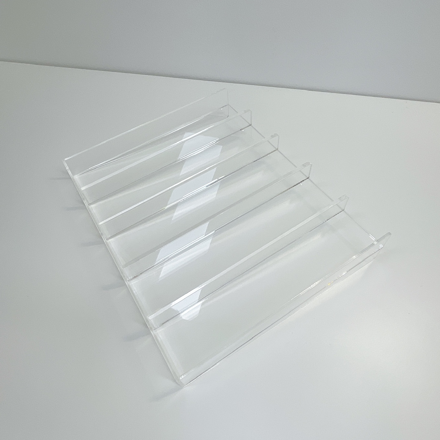 5단 진열대, 8단 진열대 등 계단형 진열대 앞에 놓아주세요.